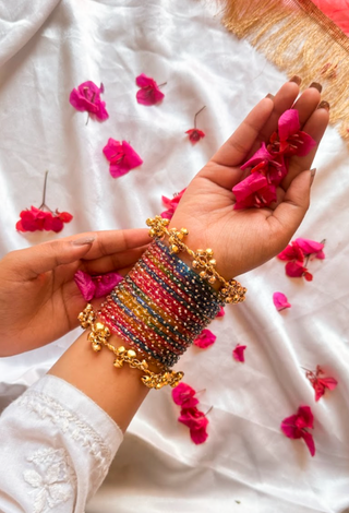 Aabshar Multicolored Roshna Bangles with Sunehri Ghunghroo Bangles | Rang Barse