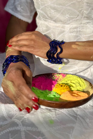 Megh Lehar | Blue Chandralekha Twisted Glass Colored Bangles