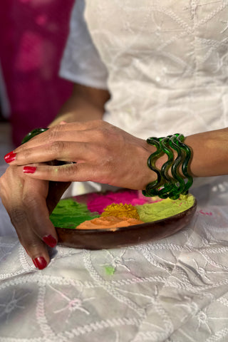 Vatika | Green Chandralekha Twisted Glass Colored Bangles