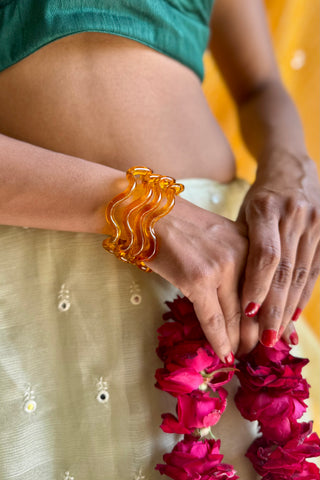 Genda Phool | Yellow Chandralekha Twisted Glass Colored Bangles