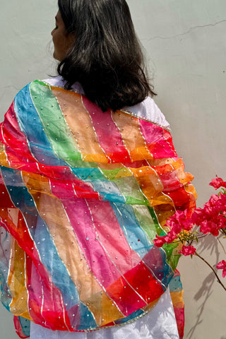 Rang Lehar | Multicolored Lehenriya Organza Dupatta