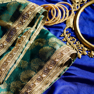 Green Banarsi Style Dupatta with Golden Zari Border | Warq October'24
