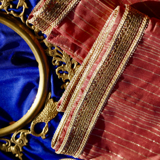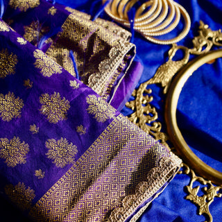 Violet Banarsi Style Dupatta with Golden Zari Border | Warq October'24