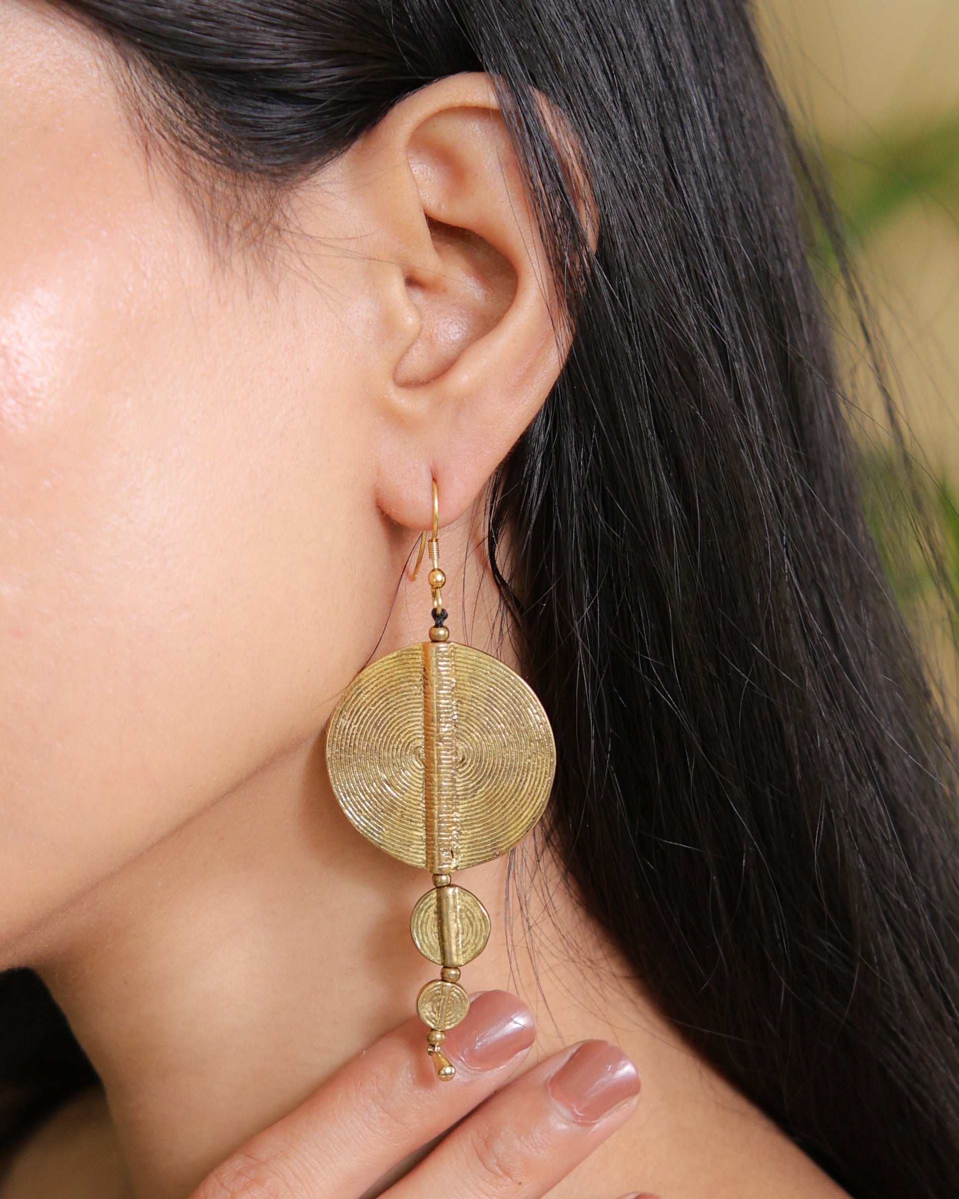 Centuries of tradition, reimagined for today : our newest Dokra earrings are finally here. Handcrafted in timeless brass, each piece carries the soul of the ancient lost-wax technique while feeling feather-light for effortless wear. Designed as the perfect companion to our beloved Dokra necklaces and bangles, these earrings complete the story : adding movement, elegance, and just the right touch of golden warmth to every look.