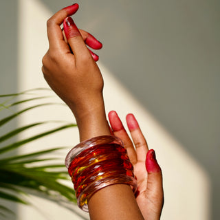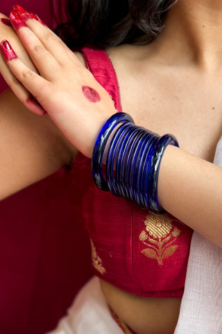 Nothing says timeless like glass bangles. They shine beautifully, evoke nostalgia, and add a perfect pop of color to any outfit.