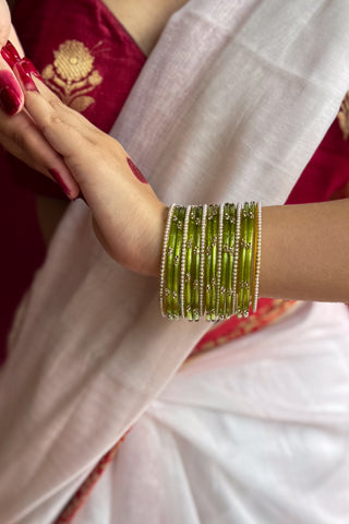 The Hariyali Stack | Green Crystal Cut & Green Stone Studded Bangles
