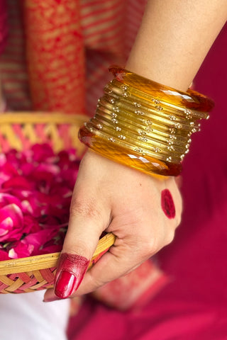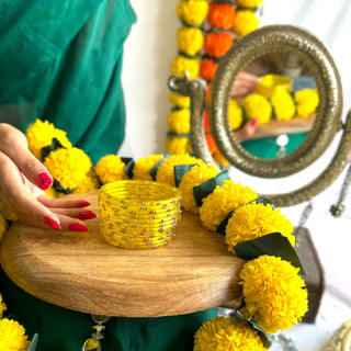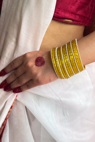 Dhup Ki Moti Bangle Stack | Yellow Raindrop Bangles with Pearl Bangles