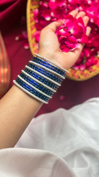 The Neel Gagan Stack | Blue Crystal Cut Bangles with Blue Nazakat Bangles