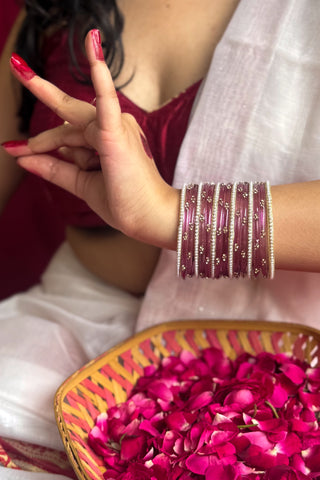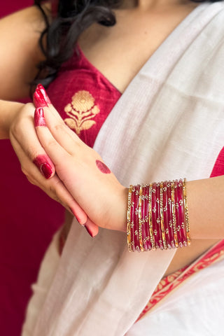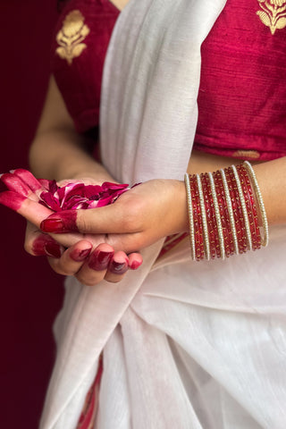 The Laal Ishq Stack | Anaari Red Stone Studded Bangles with Pearl Bangles