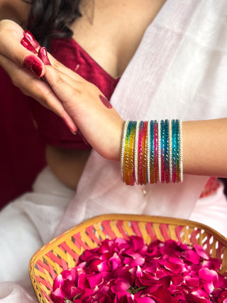 The Rangrasiya Stack | Stack of 24 Glass Bangles