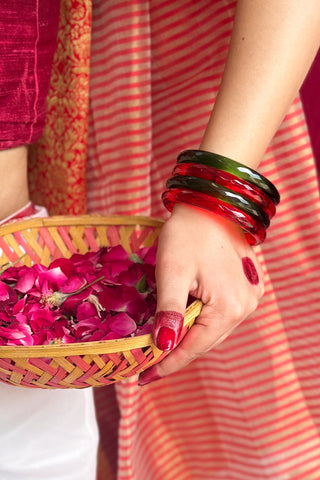 Laal aur Hariyaali Stack | Pairs of Red & Green Crystal Cut Bangles