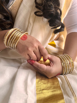 The Sunehri Moti Stack | Golden Hued Pearl Bangles