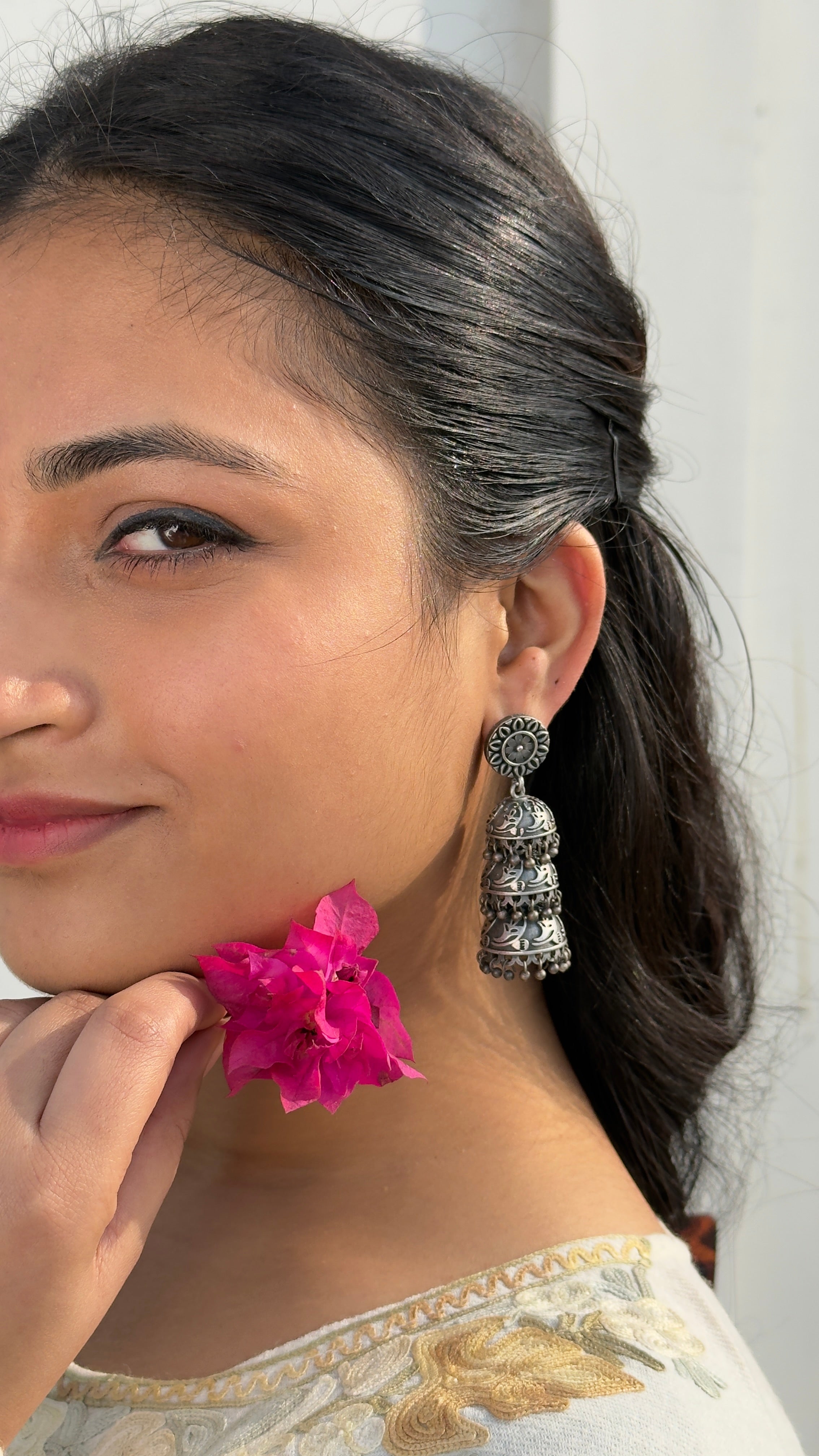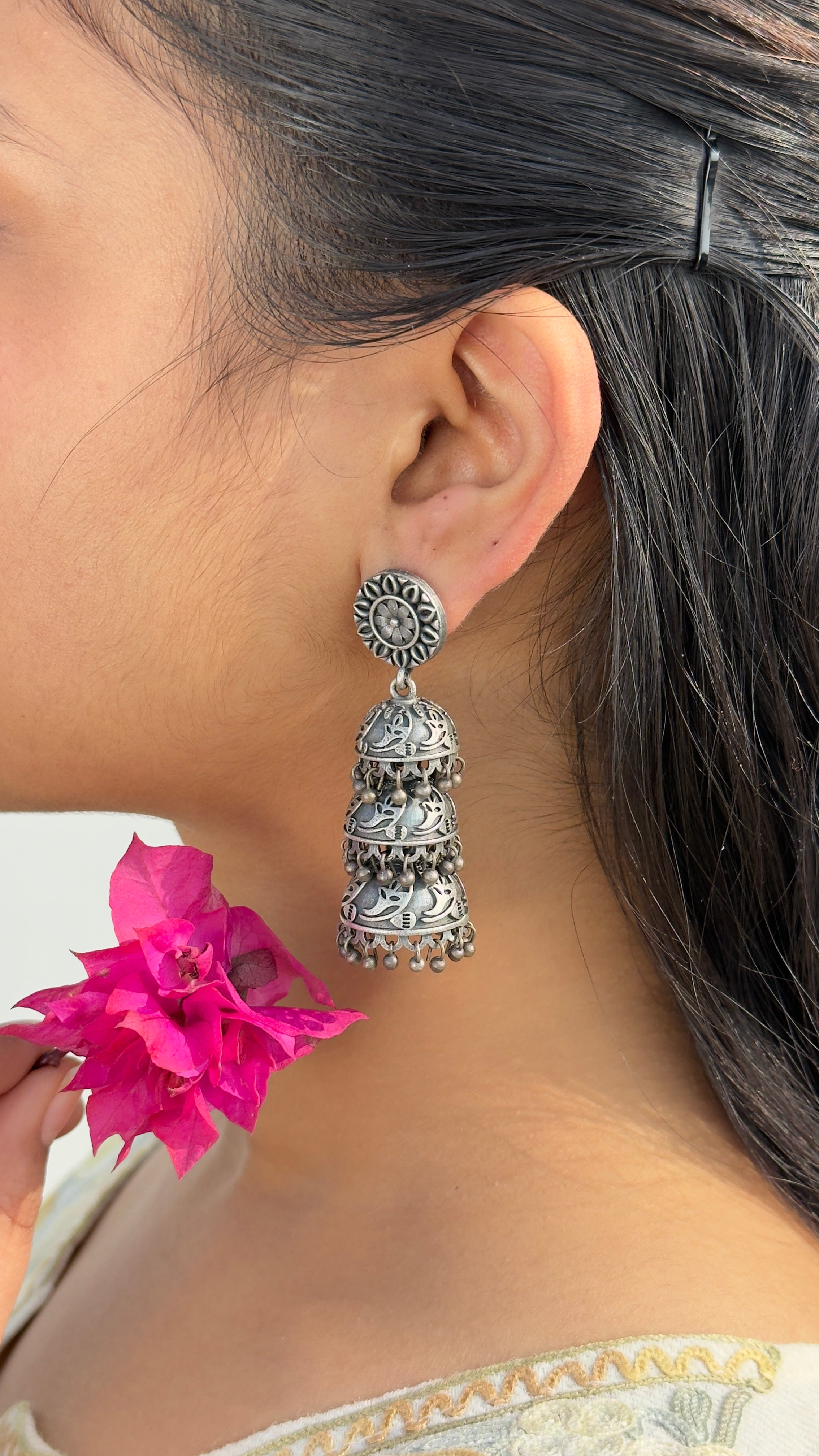 Lightweight yet statement-making, these jhumka earrings are ideal for festive occasions, ethnic wear, weddings, and daily styling. The tiered dome design creates a graceful sway, making them a must-have piece for lovers of oxidised jewellery and traditional Indian craftsmanship.