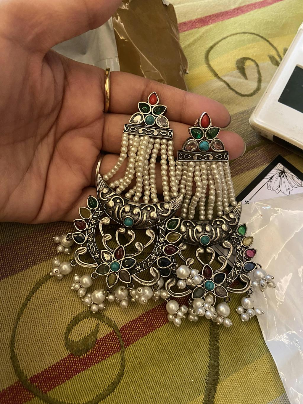 The beautiful jhumkas are a perfect style statement in any party or event. It's stylish, yet retro & perfectly teams up with saree or boho chic attires. Do not wear any neckpiece with it. This should be the only accessory style statement
