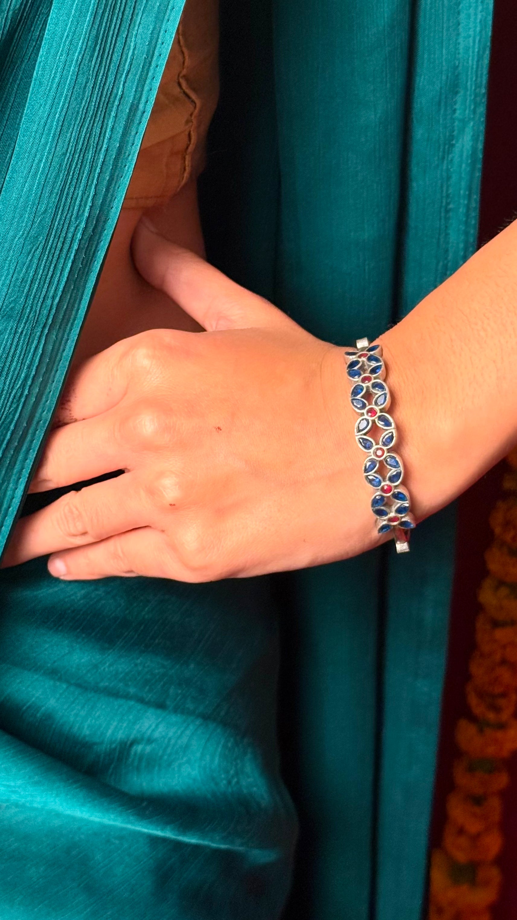 Nageena Bracelet | Stone Studded Silver Tone Bracelets