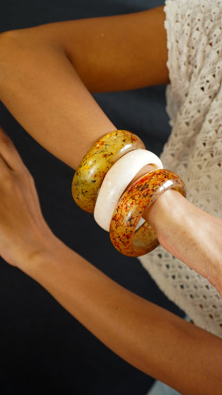 The Sunshine Pair | Vintage Wooden & Resin Bangle Stack