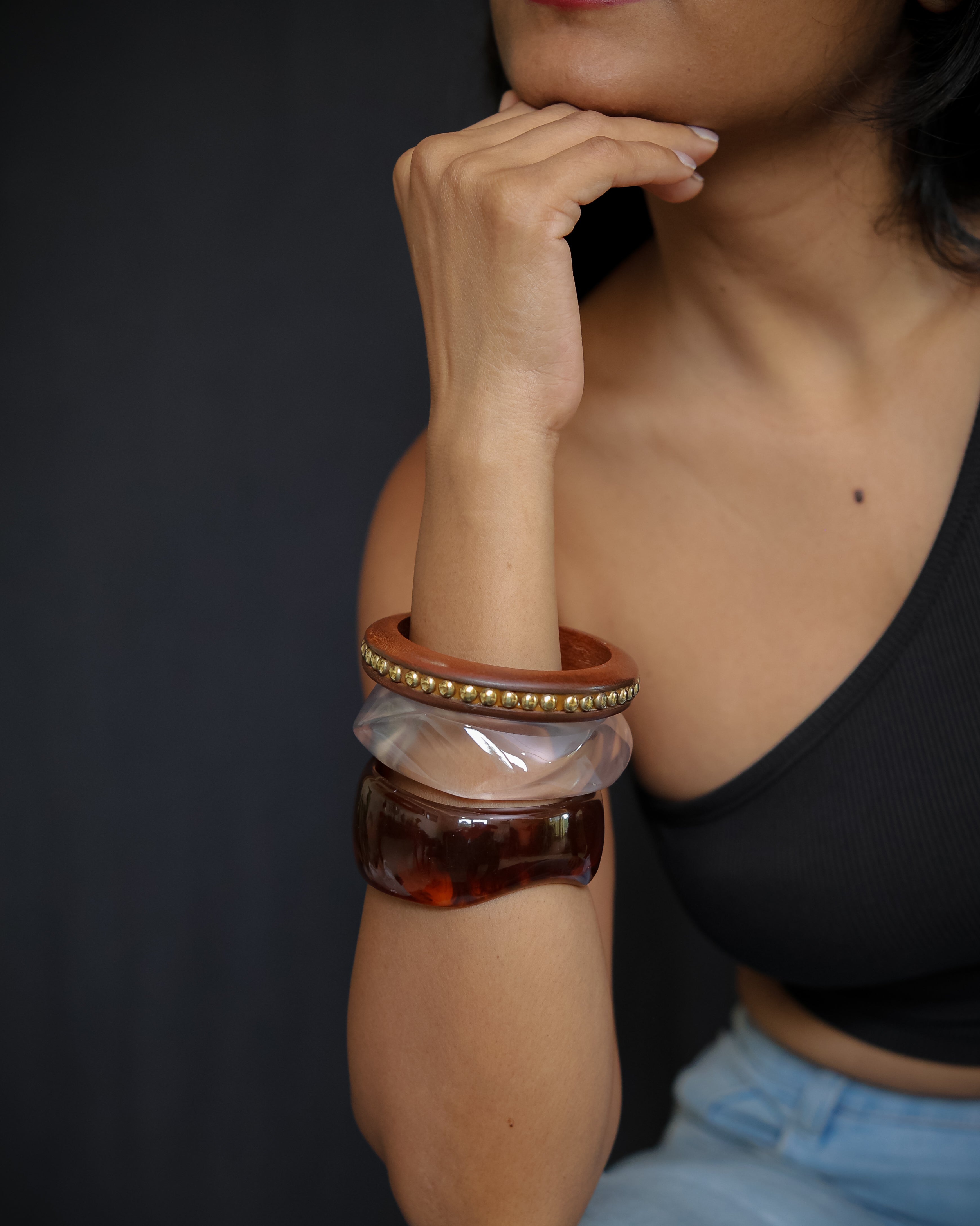 Lubna | Vintage Wooden & Resin Bangle Stack