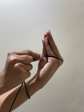 1. Pretend you're putting on your bangle. Close your hand with your thumb and pinky (little finger) together. This makes the smallest opening for the bangle.