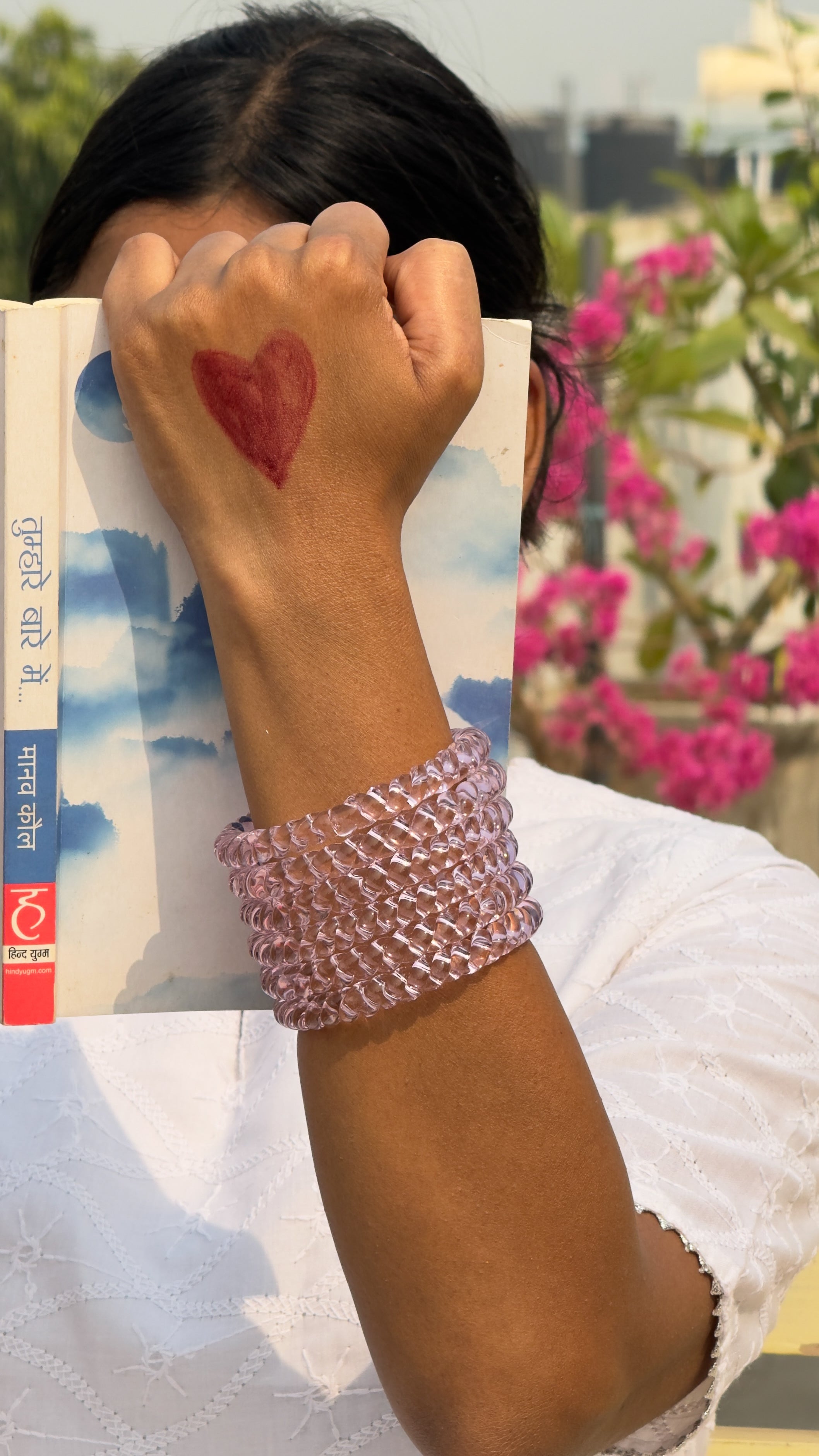 Wear them: stacked 8-10 deep for full rose-garden effect. Mixed with pearls and gold for bridal elegance. With silver for cool-toned sophistication. Over white, cream, pastels, or even denim. At mehendi ceremonies, morning pujas, garden parties, or your daily chai ritual—anywhere softness belongs.